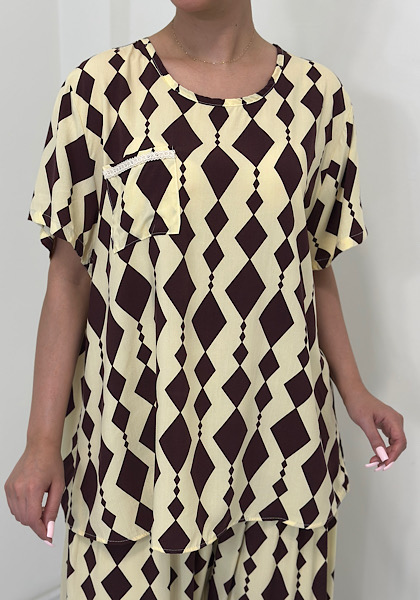 در دو سایز هست جنس پارچش نخ تایلندی بسیار لطیف و خنک حتما با اب سرد بشورین از عرض ابرفت نداره از قد ممکنه یک تا دوسانت ابرفت داشته باشه