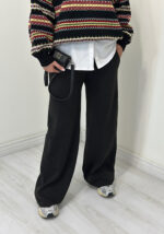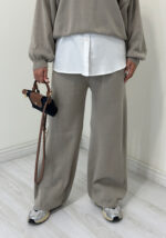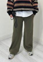 جنس شلوار بافت لطیفه کمرش کش و دو طرف جلوی شلوار جیب داره که نمای خیلی شیکی به شلوار داده